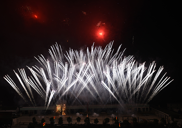 整場焰火晚會(huì)分“圣農(nóng)盛世”、“ 騰飛圣農(nóng)”、“ 冠軍風(fēng)采”、“ 祝福圣農(nóng)”四個(gè)樂章。有別于往年,今年舉辦的是音樂焰火晚會(huì),焰火燃放節(jié)奏與音樂旋律、意境有機(jī)融合,鍛造出一種火與音樂、光與節(jié)奏的完美效果。晚會(huì)采用3D立柱焰火、無人機(jī)焰火,9架無人機(jī)呼嘯而過、騰空躍起,安裝在無人機(jī)上的冷光煙花璀璨綻放,伴隨著無人機(jī)的移動(dòng)、搖擺,在夜空中跳起炫酷的焰火舞。而30多米高的3D立柱上,伴隨著動(dòng)感的音樂,焰火按旋律燃放,時(shí)而左右齊發(fā),時(shí)而旋轉(zhuǎn)噴射,將晚會(huì)推向又一個(gè)高潮。