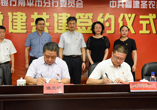 導(dǎo)讀:7月18日,圣農(nóng)集團黨委與建行南平分行黨委黨建共建簽約儀式暨精準(zhǔn)扶貧座談會在圣農(nóng)集團總部召開。雙方簽訂《黨建共建協(xié)議》,互授黨建共建單位牌匾。