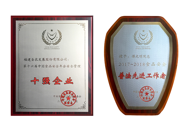 中國白羽肉雞聯(lián)盟主席、圣農(nóng)公司董事長傅光明也連續(xù)獲得了“安全管理十大人物獎”、“普法先進(jìn)工作者”、“優(yōu)秀企業(yè)家”稱號.
