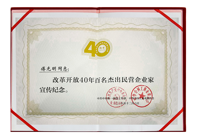 會(huì)上,國家領(lǐng)導(dǎo)為圣農(nóng)公司董事長傅光明等100位杰出民營企業(yè)家頒發(fā)改革開放40年杰出民營企業(yè)家紀(jì)念章。