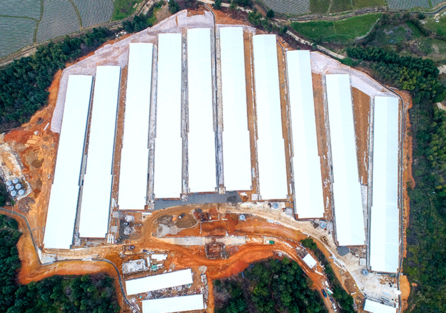 不僅在光澤基地,集團(tuán)旗下的浦城基地、政和基地的產(chǎn)業(yè)化擴(kuò)建工程也在如火如荼進(jìn)行中。浦城基地肉雞產(chǎn)業(yè)化擴(kuò)建工程被列為福建省重點(diǎn)建設(shè)項(xiàng)目,投資4.4億元,新建食品7廠、食品8廠、種雞場(chǎng)片區(qū)、飼料廠一期擴(kuò)建工程、宿舍樓。在施工現(xiàn)場(chǎng),我們看到食品7廠、飼料廠一期擴(kuò)建工程順利封頂,正在安裝設(shè)備。種雞場(chǎng)片區(qū)10棟雞舍中的4棟、宿舍樓已經(jīng)封頂,食品8廠完成預(yù)制管施工。