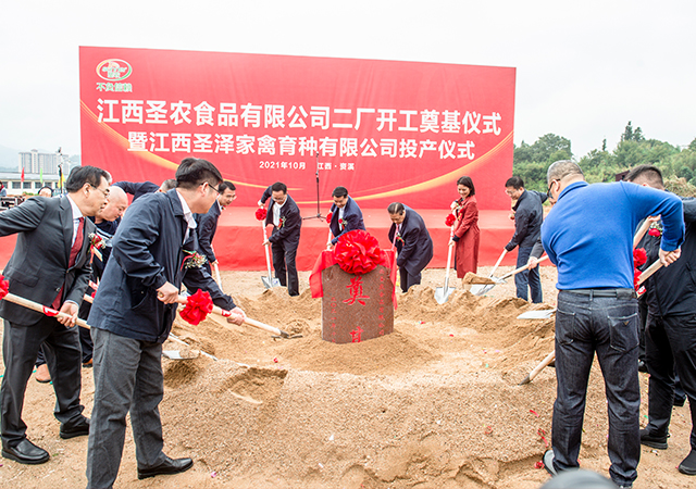 2021年10月18日上午,圣農(nóng)食品十廠開工暨資溪祖代種雞場投產(chǎn)儀式在資溪舉行。圣農(nóng)發(fā)展股份有限公司董事長傅光明、常務(wù)副總裁陳劍華、周紅,副總裁肖凡,資溪縣委書記吳淑珍參加了儀式,撫州市委副書記李高興下達(dá)開工令。