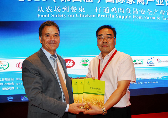 導(dǎo)讀:在2015年8月21至22日于上海召開(kāi)的、主題為“從農(nóng)場(chǎng)到餐桌,打通雞肉食品安全產(chǎn)業(yè)鏈”的第四屆國(guó)際家禽產(chǎn)業(yè)論壇上,沃爾瑪副總裁弗蘭克·揚(yáng)納斯,向圣農(nóng)發(fā)展股份有限公司常務(wù)副總裁傅細(xì)明,贈(zèng)送了他撰寫(xiě)的《食品安全文化》一書(shū)。